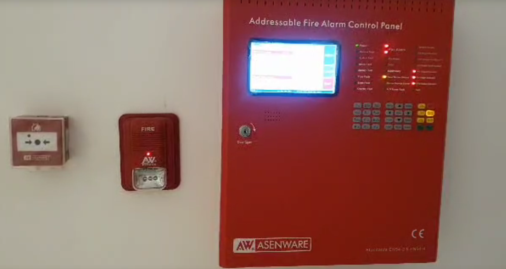 In this project, ASENWARE provides a 7-inch LCD touch screen with button operation wired and wireless addressable fire alarm control panel, LPCB-certified loop power manual call point, premium loop power addressable strobe sounder, and so on.