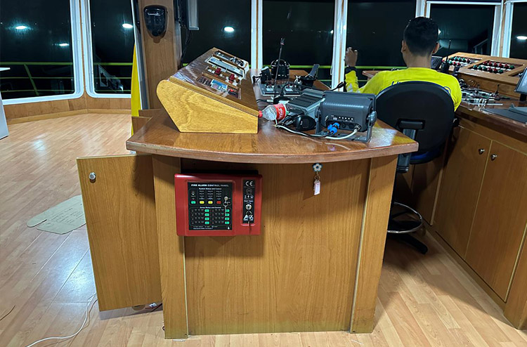 When the console receives the fire alarm, it should alert the whole ship with the siren or alarm bell immediately. The captain should go to the console to command after hearing the alarm, directing the fire-fighting acts of the whole ship. The ship should be slowed down or stopped, and driven to places where the fire is in the downwind area.